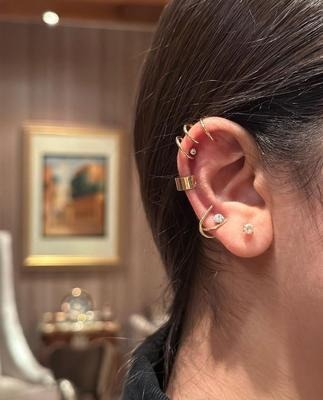 Elevate your style with these stunning Gold Plated Charms Hanging Ear Cuffs. Featuring a vibrant multicolored design and an adjustable fit, this set includes 12 unique pieces that are perfect for any occasion. Transform your look effortlessly and express your individuality with these eye-catching ear cuffs.